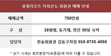 ◆용평 타워콘도 회원권 안내◆