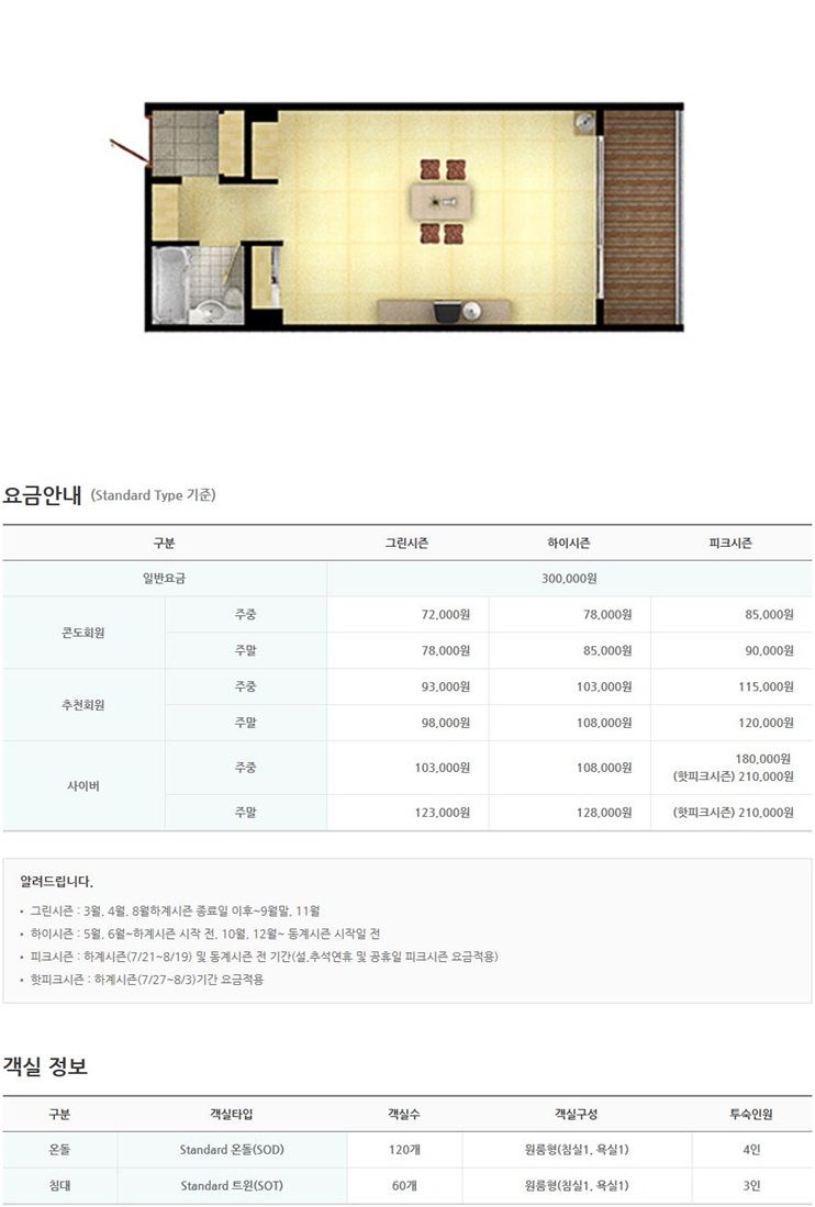 객실수 : 168실(온돌)/40실(침대)