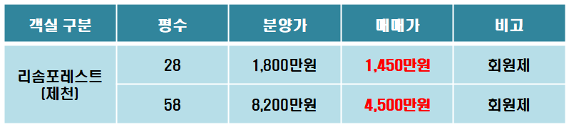 숲속에 천국 리솜포레스트 급매물 안내입니다.