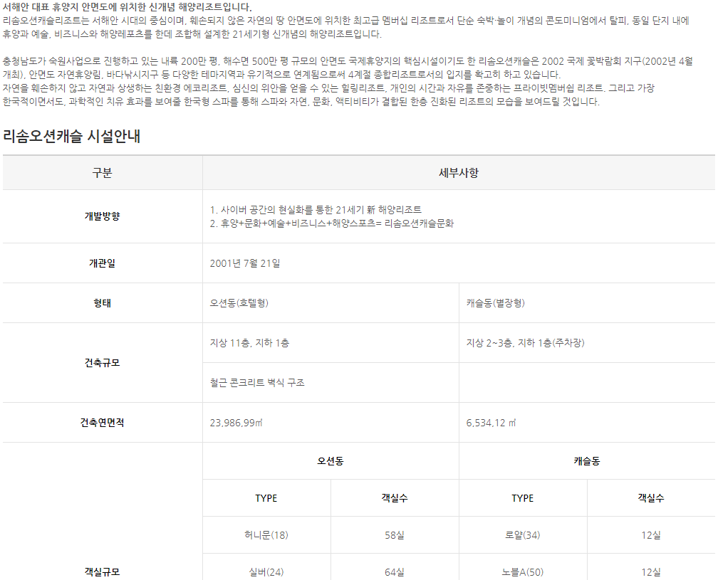 리솜 오션캐슬(안면도) 회원권 급매물 안내