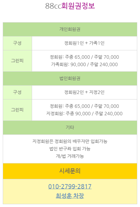 88cc회원권 매물 안내입니다.
