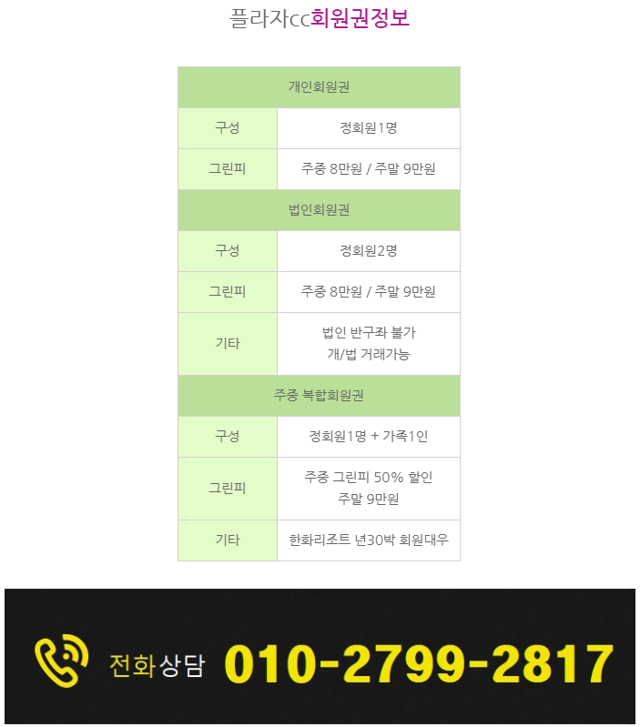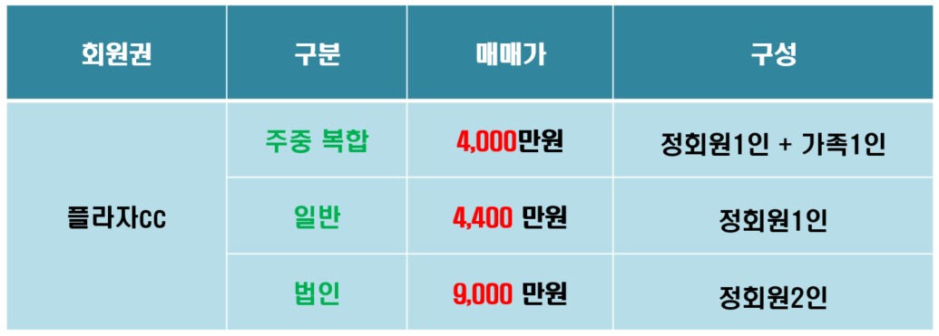 플라자cc 골프회원권 매매 시세 안내(2019년 11월 8일 기준)