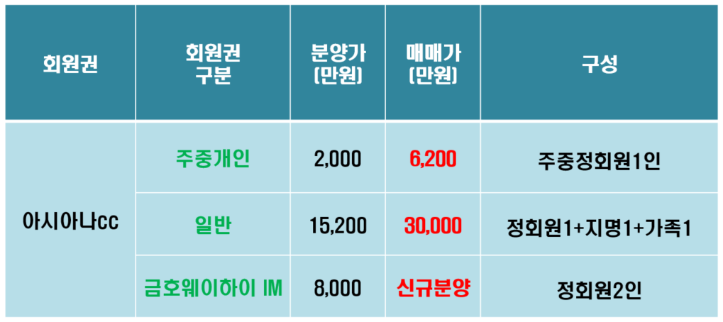 아시아나cc회원권 매물 및 분양 안내입니다.