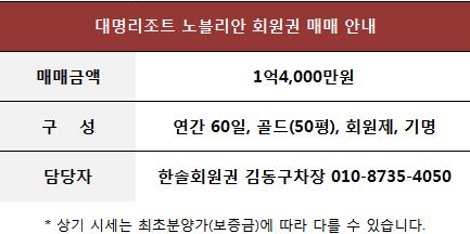 ◆대명 노블리안 골드 멤버 기명 회원권 안내◆