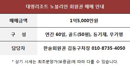 대명리조트 노블리안 골드 회원권(등기제 무기명) 혜택과 시세안내