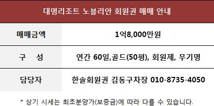 ◆대명 노블리안 골드 회원제 무기명 회원권 안내◆
