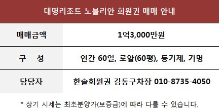 ◆대명 노블리안 로얄 등기제 기명 회원권 안내◆