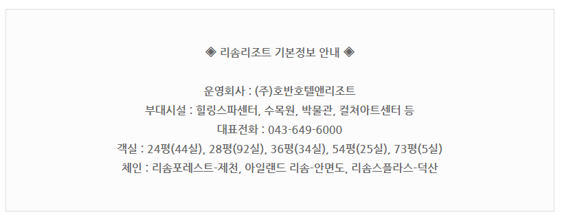 레저문화기업인 리솜리조트는 제천 포레스트 리솜, 안면도 아일랜드 리솜,