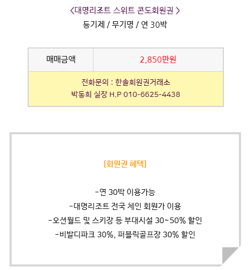 '대명리조트/스위트형'에서 '한솔회원권거래소' 작성함