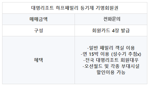 오늘은 대명리조트의 하프패밀리 기명회원권에 대해서