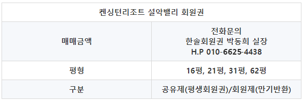 켄싱턴리조트의 설악밸리 회원권은 공유제와 회원제로