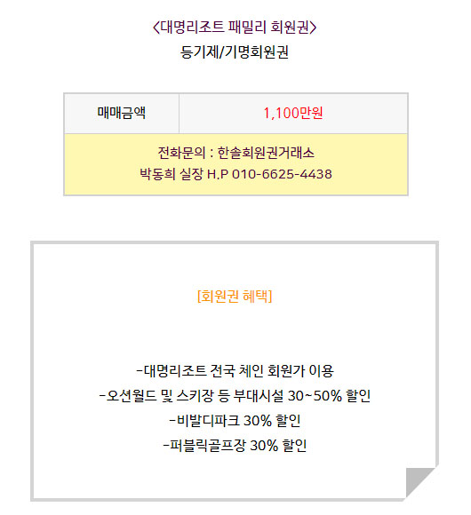 '대명리조트/패밀리형'에서 '한솔회원권거래소' 작성함