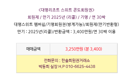 '대명리조트/스위트형'에서 '한솔회원권거래소' 작성함