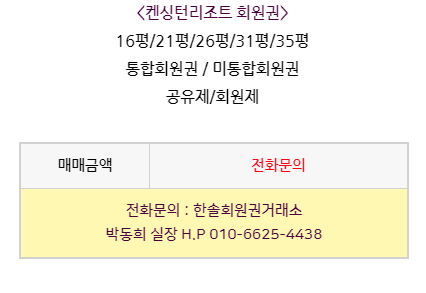 켄싱턴리조트회원권 시세 및 혜택안내 '켄싱턴리조트/16평-21평'에서 '한솔회원권거래소' 작성함 켄싱턴리조트회원권 시세 및 혜택안내 안녕하세요. 한솔회원권거래소 박동희 실장입니다. 오늘은 켄싱턴리조트회원권에 대해서 알아보도록 하겠습니다. 매매상담 - 한솔회원권거래소 박동희 실장 010.6625.4438 골프/콘도/휘트니스 회원권 한솔회원권거래소 빠른상담을 원하신다면 아래의 이미지를 클릭하여 주시기 바랍니다. - 공유하기 게시글 관리 한솔콘도닷컴 저작자표시 (새창열림)