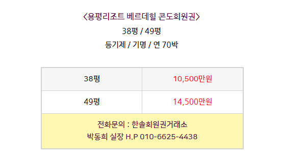 용평리조트베르데힐 콘도회원권 매매안내 '용평리조트/베르데힐'에서 '한솔회원권거래소' 작성함 용평리조트베르데힐 콘도회원권 매매안내 안녕하세요. 한솔회원권거래소 박동희 실장입니다. 오늘은 용평리조트 베르데힐 콘도회원권에 대해 알아보도록 하겠습니다. 매매상담 - 한솔회원권거래소 박동희 실장 010.6625.4438 골프/콘도/휘트니스 회원권 한솔회원권거래소 빠른상담을 원하신다면 아래의 이미지를 클릭하여 주시기 바랍니다. ▼▼▼ 공유하기 게시글 관리 한솔콘도닷컴 저작자표시 (새창열림)