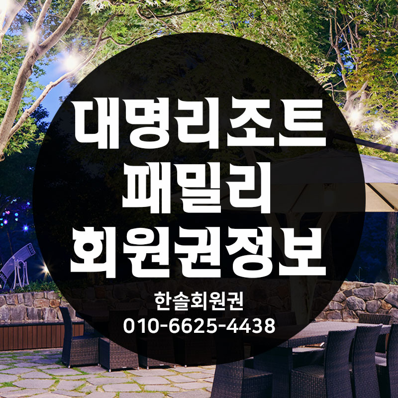 대명리조트패밀리회원권 시세 및 혜택안내 '대명리조트/패밀리형'에서 '한솔회원권거래소' 작성함 대명리조트패밀리회원권 시세 및 혜택안내 안녕하세요. 한솔회원권거래소 박동희 실장입니다. 오늘은 대명리조트패밀리콘도회원권에 대해 알아보도록 하겠습니다. 매매상담 - 한솔회원권거래소 박동희 실장 010.6625.4438 골프/콘도/휘트니스 회원권 한솔회원권거래소 빠른상담을 원하신다면 아래의 이미지를 클릭하여 주시기 바랍니다. ▼▼▼ 공유하기 게시글 관리 한솔콘도닷컴 저작자표시 (새창열림)