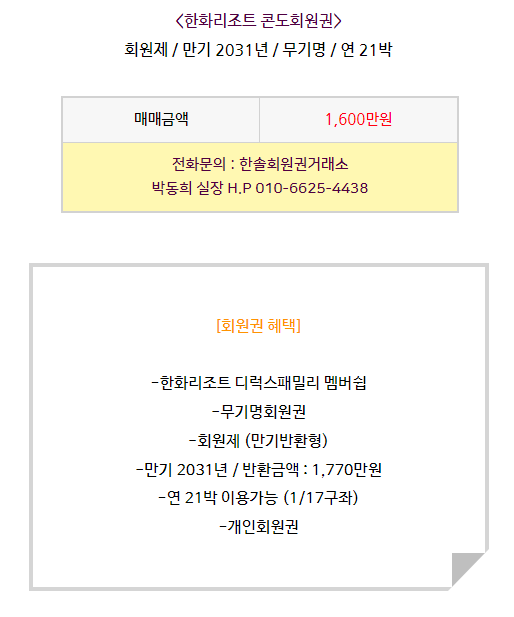 매매상담 - 한솔회원권거래소 박동희 실장 010.6625.4438