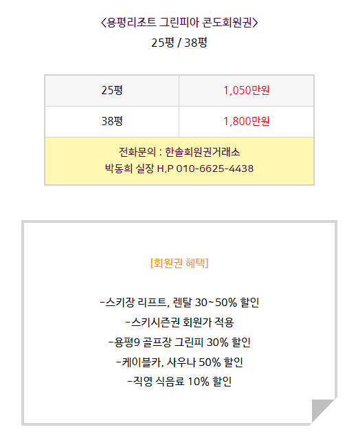 '용평리조트/그린피아'에서 '한솔회원권거래소' 작성함