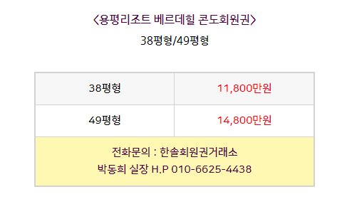 용평리조트 베르데힐 회원권 시세 확인하기 '용평리조트/베르데힐'에서 '한솔회원권거래소' 작성함 용평리조트 베르데힐 회원권 시세 확인하기 안녕하세요. 한솔회원권거래소 박동희 실장입니다. 오늘은 용평리조트 베르데힐콘도에 대해서 알아보도록 하겠습니다. 매매상담 - 한솔회원권거래소 박동희 실장 010.6625.4438 용평리조트 오시는 길 골프/콘도/휘트니스 회원권 한솔회원권거래소 빠른상담을 원하신다면 아래의 이미지를 클릭하여 주시기 바랍니다. ▼▼▼ 공유하기 게시글 관리 한솔콘도닷컴 저작자표시 (새창열림)