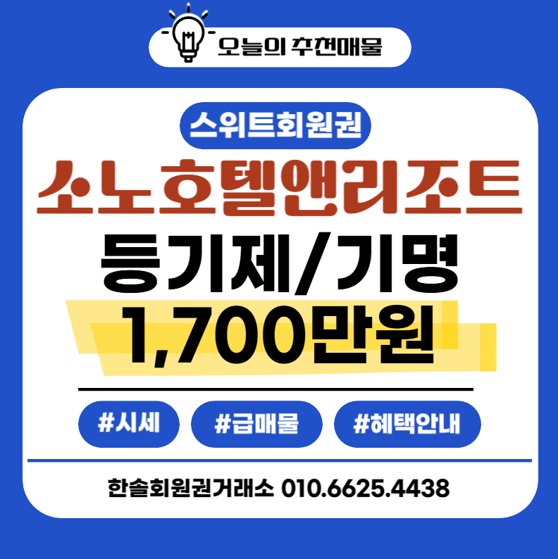 급매물 소노호텔앤리조트 스위트 콘도회원권 등기제 혜택