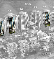 팔봉산과 홍천강으로 둘러싸인 단지내에 두능산 자락을 등뒤로하며, 정면에 호수가 있는 전형적인 배산임수의 풍수를 지닌 건물로써 비발디파크 내에서도 가장 여유롭고 독립된 단지입니다.